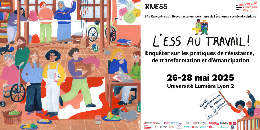 La 24e édition des Rencontres Inter-Universitaires de l’Économie Sociale et Solidaire (RIUESS) se tiendra du 26 au 28 mai 2025 à l’Université Lumière Lyon 2, sur le thème : « L’ESS au travail ! Enquêter sur les pratiques de résistance, de transformation et d’émancipation ».